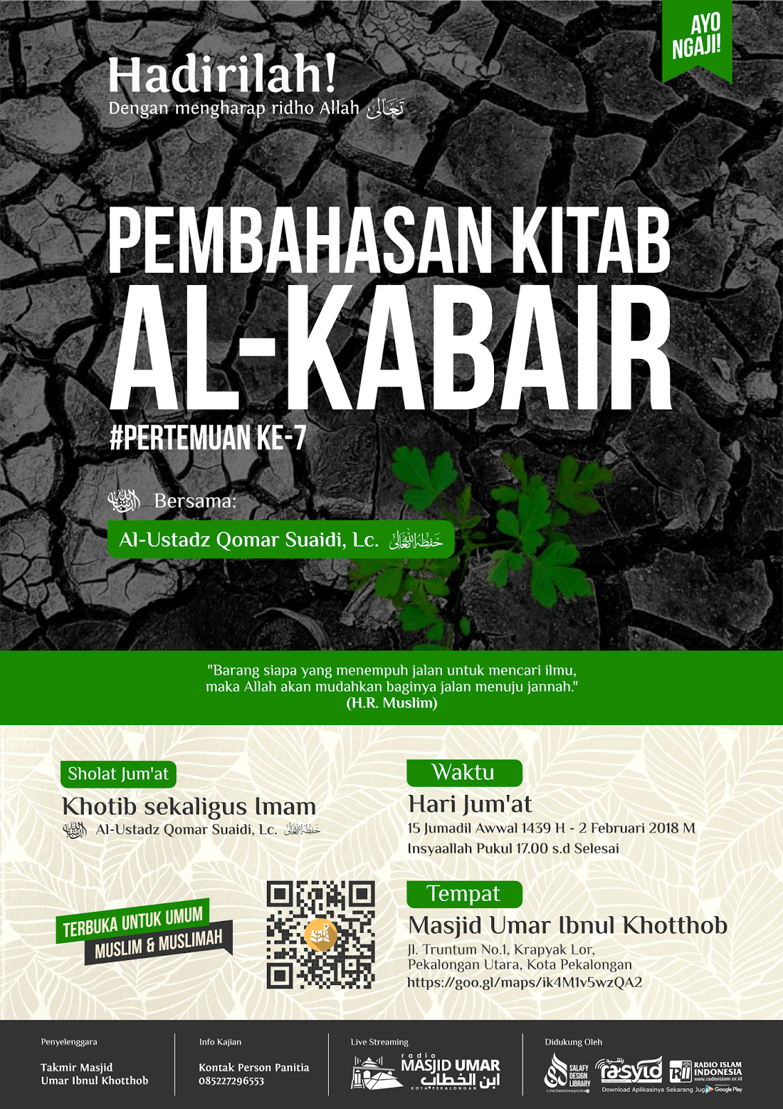 Kajian kitab al kabair ust. Di antara perkara yang harus diketahui oleh setiap muslim dan muslimah yaitu mengenal dosa dosa besar atau al kabair hal itu dikarenakan allah ta ala memerintahkan kita untuk menjauhi dosa dosa besar dan allah ta ala juga melarang kita untuk mendekati dosa dosa besar tersebut di dalam banyak ayat yang disebutkan. Audio kajian islam ilmiah masjid umar ibnul khotthob pekalongan jawa tengah jum at 18 sya ban 1439h 04 mei 2018m al ustadz qomar su aidi hafizhahullah 01. Beliau mengawali kitabnya dengan memuji allah ta ala atas nikmat iman dan seluruh rukun iman yang ada.