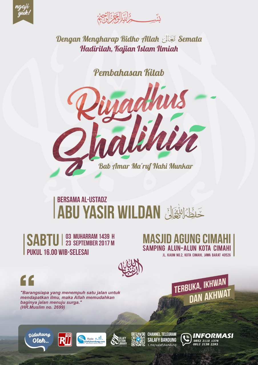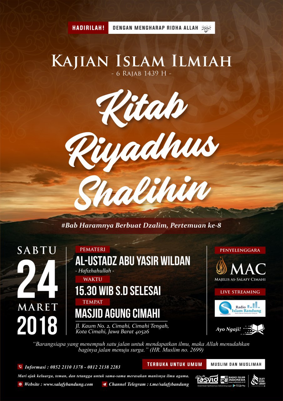 Berikut kami sampaikan audio kajian rutin islami yang membahas kitab hadits riyadhus shalihin karya al imam an nawawi rahimahullah yang dibawakan oleh al ustadz ja far umar thalib حفظه الله di masjid utsman bin affan degolan sleman yogyakarta. Bismillah kajian ilmiah rutin ba da maghrib pembahasan kajian kitab riyadush sholihin bab 11 mujahadah bersungguh sungguh pertemuan ke 2 bersama. Kitab riyadhus shalihin sering dibahas hampir di seluruh masjid yang ada di muka bumi. Kitab fadhlu ilmis salaf ala ilmil khalaf oleh ustadz dr.