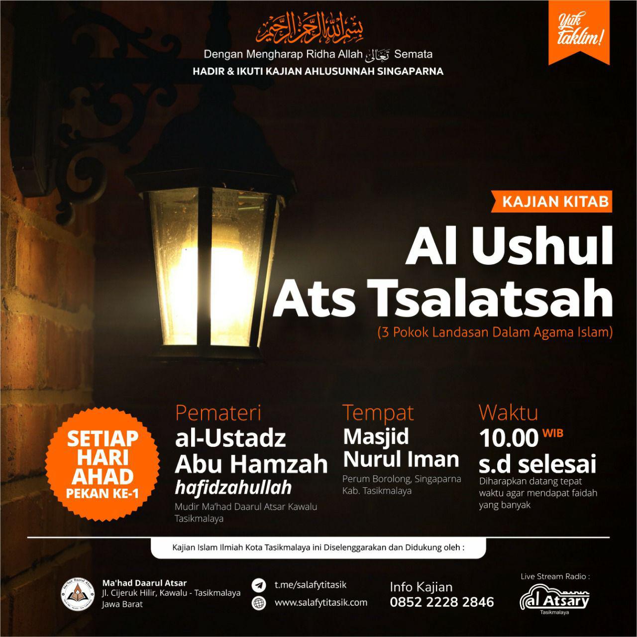 Masjid nurul iman perum borolong indah singaparna kab. Kajian ushul tsalatsah audio preview remove circle share or embed this item. Berikut ini rekaman kajian penjelasan kitab al ushul ats tsalatsah شرح الأصول الثلاثة atau biasa disebut dengan 3 landasan utama karya syaikhul islam muhammad bin abdul wahab at. Manuskrip tulisan tangan di markas malik faishal ksa no.