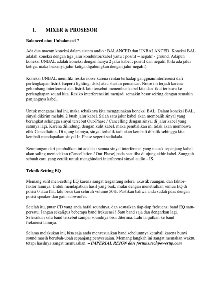 Penggunaan professional sound system orang tehnik menyebutnya mixer console atau mixer audio.