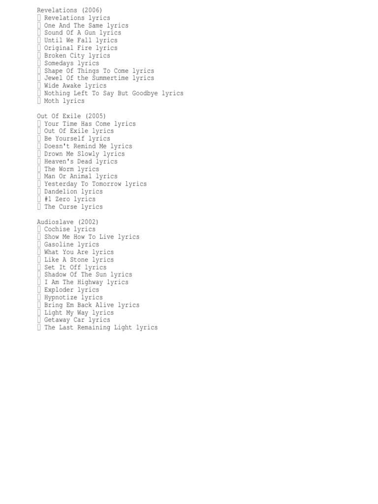 See the full nothing left to say but goodbye lyrics from audioslave.